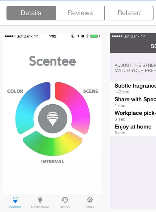 إرسال العطر مع رسالة الكترونيّة لزوجتك أمر أصبح الآن معقولاً، من هاتفك الخليويّ! كل ما تحتاجه هو تحميل تطبيق Scentee الالكتروني واختيار العطر الذي تفضّله زوجتك، مثل الفراولة أو الفانيلا أو القهوة، وحتى الكاري! يمكنك شراء رذاذ خاص بالتطبيق تعلّقه على هاتفها، تفوح منه الرائحة التي تفضلّها كلّ ما ترسل لها رسالة، ويدوم لحوالي 100 رسالة. كما يمكنها التطبيق أن تختار لوناً يضيء هاتفها كلّما أرسلت لها رسالة. من الممكن أيضاً التحكم في قوّة العطر بين الخفيف والقويّ. كما يسمح لك التطبيق برش الرذاذ بالوقت الذي تريده، حتى مع منبّه للساعة، فبدل أن تستيقظ على صوت المنبّه، يمكنك مثلاً أن تستيقظ على رائحة القهوة!