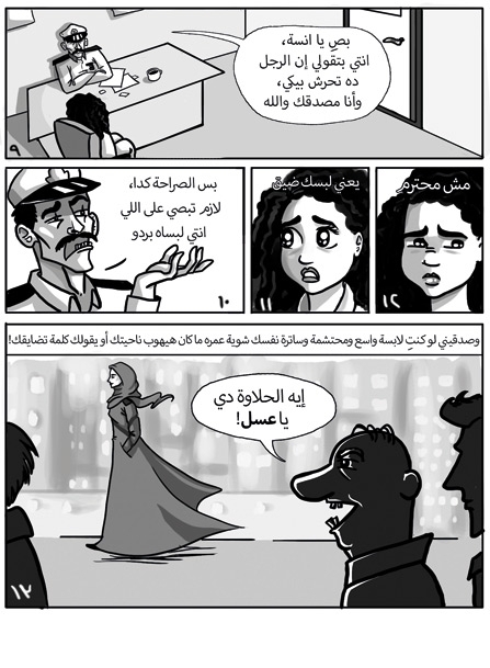 الكوميكس يتناول كثيراً من المشكلات التي تواجه المرأة المصرية أو العربية، مثل التحرّش أو التمييز وما إلى ذلك، وأنا اخترت هذه الوسيلة للتعبير عن تلك المشكلات، لأن الكوميكس أصبح منتشراً بشكل كبير بين الشباب والفتيات على مواقع التواصل الاجتماعي، كما أن الطابع الفكاهي واللغة السهلة والبسيطة التي يتسم بها «الكوميكس» يجعلان الجميع يلتفتون إليه ويهتمون به.