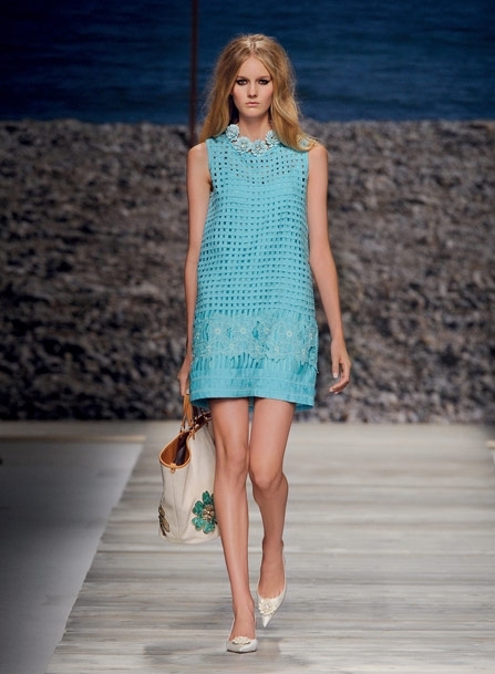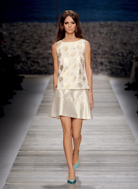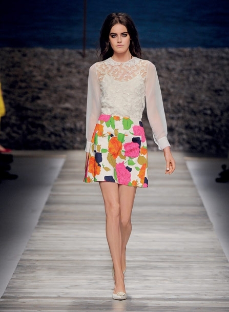 في عرض Blugirl، أرادت المصممة آنا موليناري أزياء رومانسية فرحة يمكن للمرأة بأي عمر أن ترتديها. وفي الكواليس شددت آنا على أن المجموعة بكاملها بما فيه الأكسسوارات والأحذية مصنوعة في إيطاليا، حتى الأقمشة المطبوعة بورود حديقة الصيف.