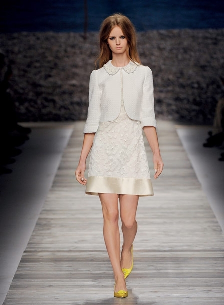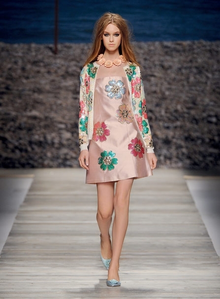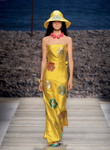 الفساتين مطرزة يدوياً، وكذلك الورود الكبيرة المطرّزة بالكريستال. قطعة لا يمكنك الاستغناء عنها؟ المعطق الصيفي، من الدانتيل الذهبي مثلاً، والحذاء بكعب صغير ومريح مع وردة صغيرة ملوّنة، والسوار بالورود الملوّنة أيضاً.