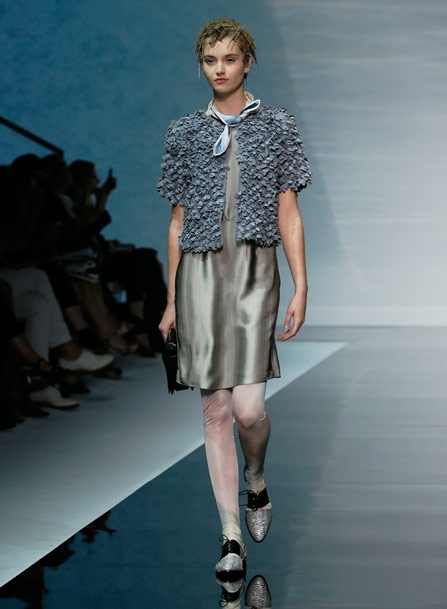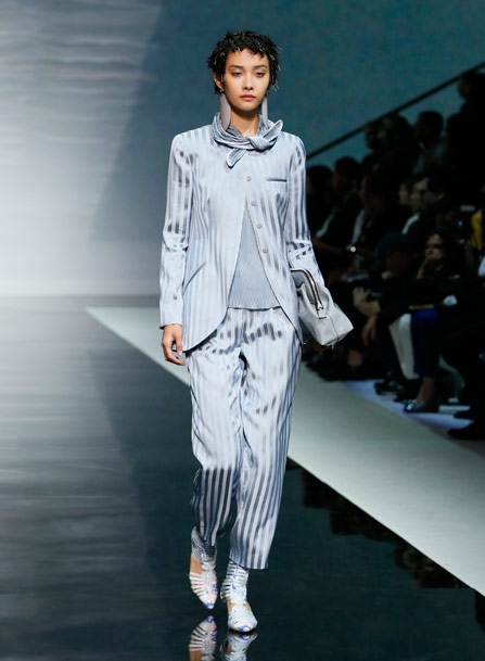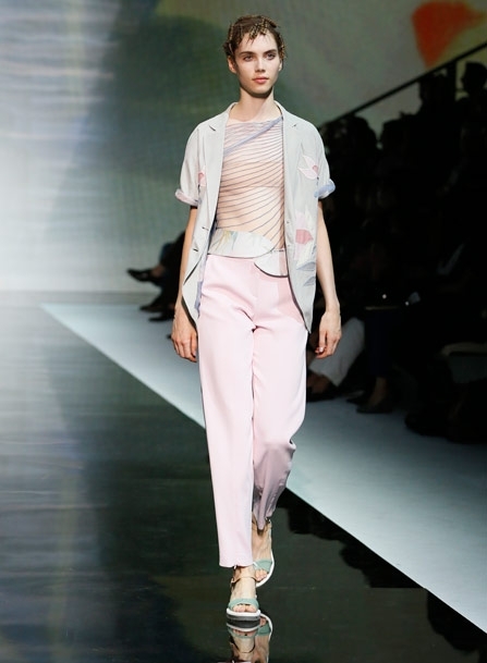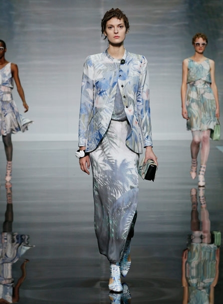 في تصاميم Emporio Armani لهذا الصيف حدائق معلّقة تنعكس فيها صورة المياه الهادئة والغيوم والورود، بين الحقيقة والخيال. جورجيو أرماني يحلم بمستقبل أخضر تندمج فيه التقنيّة بطريقة إيجابيّة. مجموعة تطغى عليها الأقمشة المطبوعة والشبك والباييت، اختاري منها السراويل الواسعة التي تصل إلى الكاحل، أنيقة ومريحة، ومنديل ضغير اعقديه حول العنق للحصول على طلّة إيطاليّة انيقة بلحظات!