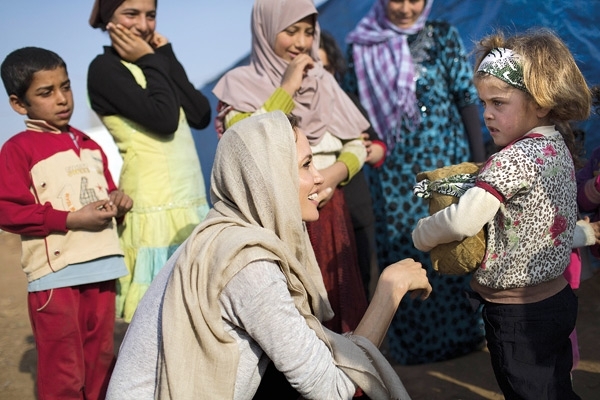 زارت الممثلة الأميركية وسفيرة النوايا الحسنة للمفوضية العليا لشؤون اللاجئين في الأمم المتحدة أنجلينا جولي الأطفال السوريين في لبنان. بقيت النجمة ثلاثة أيام في سهل البقاع، شمال لبنان للفت النظر إلى تجمع سكاني مكتظ نتيجة الحرب في سورية التي بدأت في آذار/مارس عام 2011. وقد فاجأت مبعوثة الأمم المتحدة أنجلينا لبنان بحضورها شبه السري الذي يهدف إلى لفت النظر إلى التحديات التي يواجهها آلاف النازحين السوريين الأطفال. مرتدية أزياء قطنية مع وشاح يحجب هويتها، اقتربت أنجلينا من الأطفال الأيتام والمحرومين عن عائلاتهم في سهل البقاع حيث يقيم السوريون الأكثر فقراً. وخلال هذه الزيارة، استقبل رئيس الجمهورية اللبنانية العماد ميشال سليمان أنجلينا في القصر الجمهوري في بعبدا حيث تحدثا عن نتائج جولتها على أماكن النازحين السوريين في البقاع وما تنوي الأمم المتحدة القيام به على هذا الصعيد. كما التقت أنجلينا رئيس الحكومة اللبنانية تمام سلام في السرايا الحكومية، والذي أطلعها على ما يقدمه لبنان للنازحين من مساعدات.