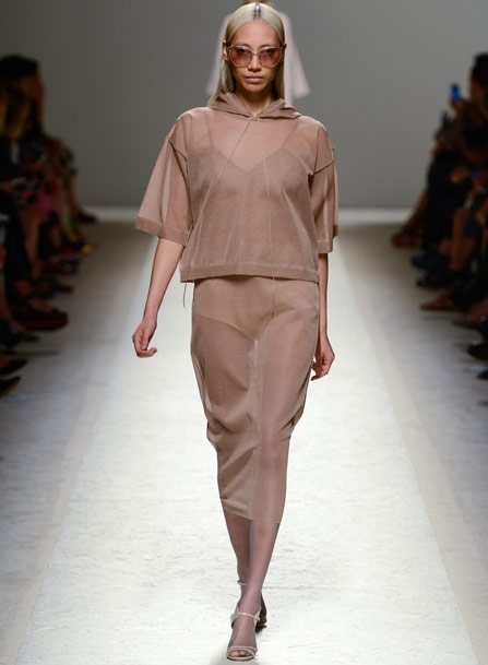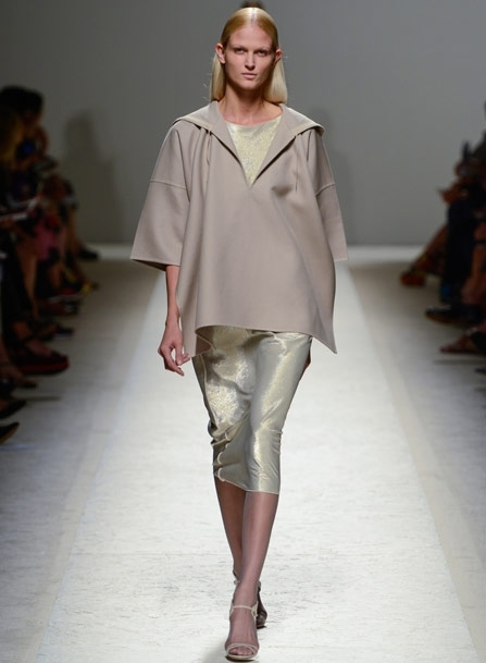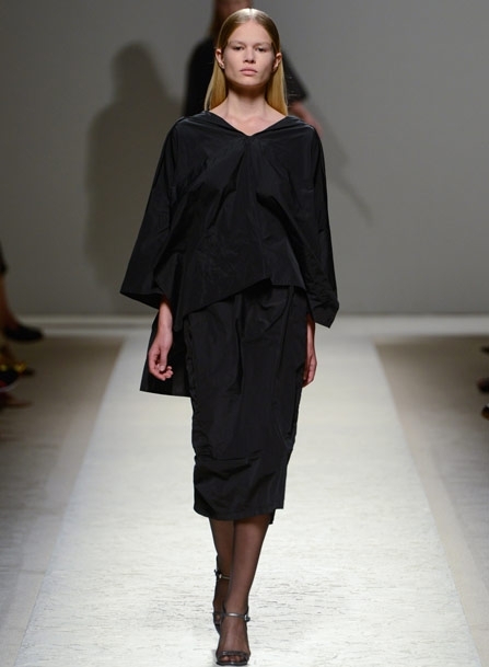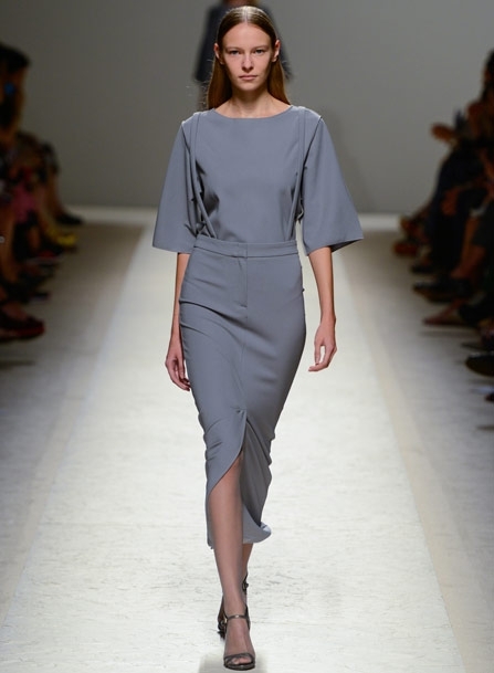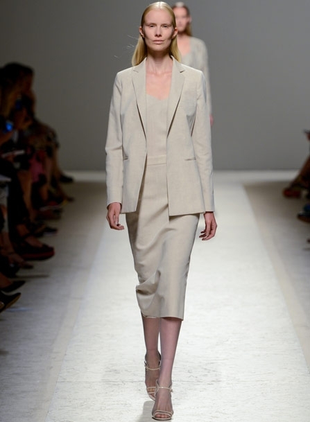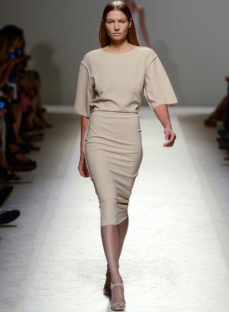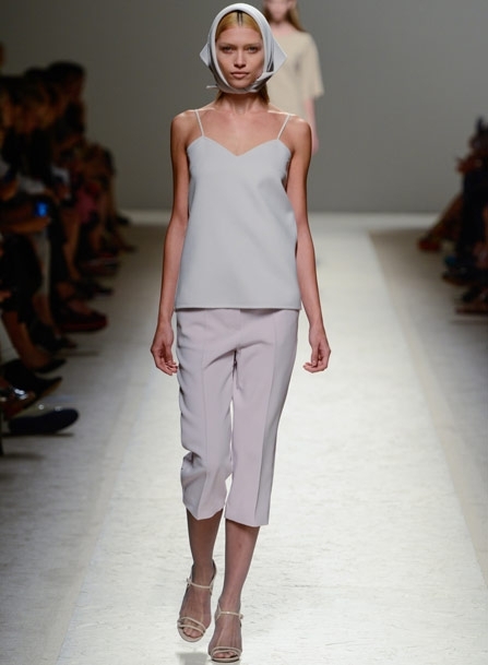 السراويل في المجموعة أتت قصيرة تحت الركبة، كما رأينا الفساتين الخفيفة الضيقة ارتدتها العارضات مع سترات واسعة. والتنانير ضيقة وطويلة تحت الركبتين- Pencil Skirt.