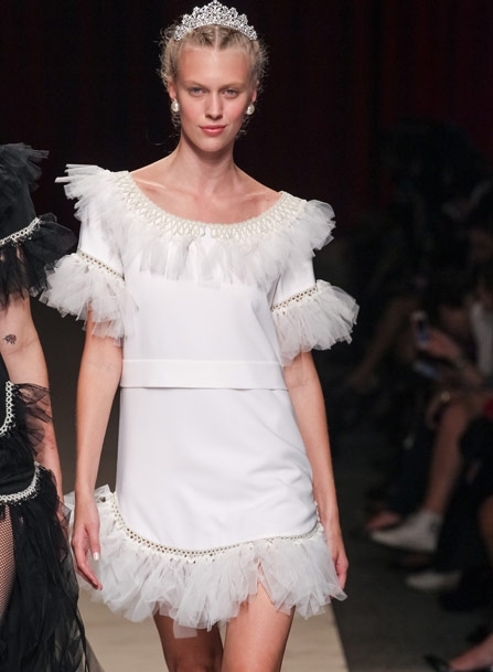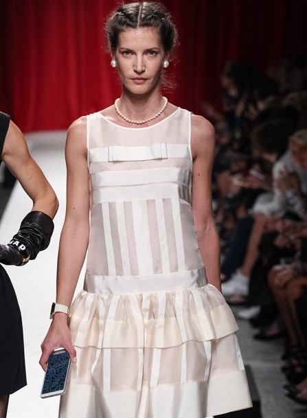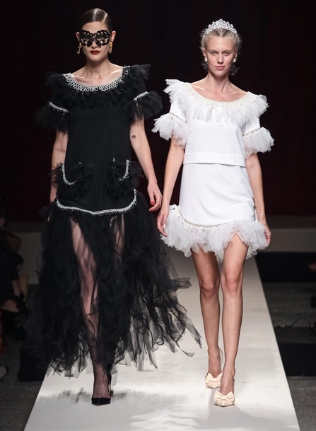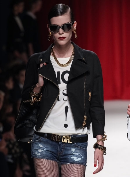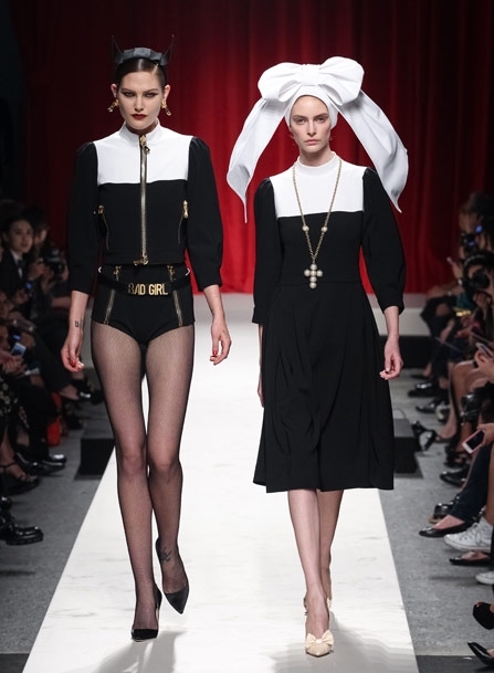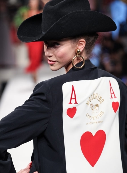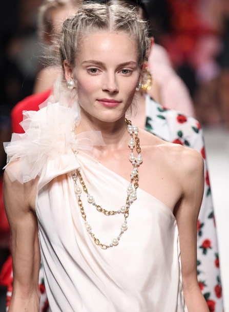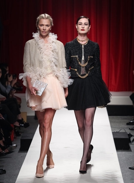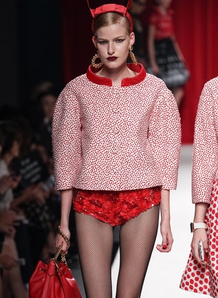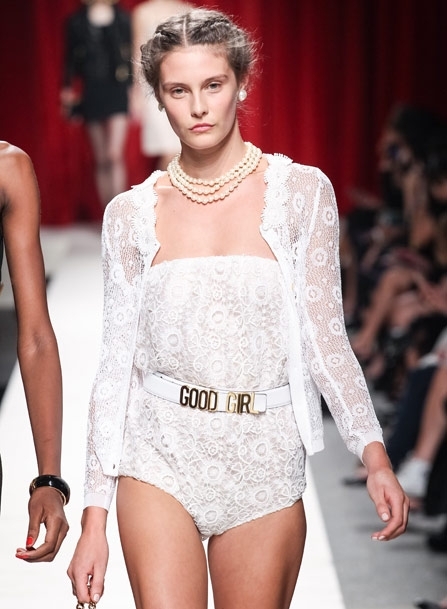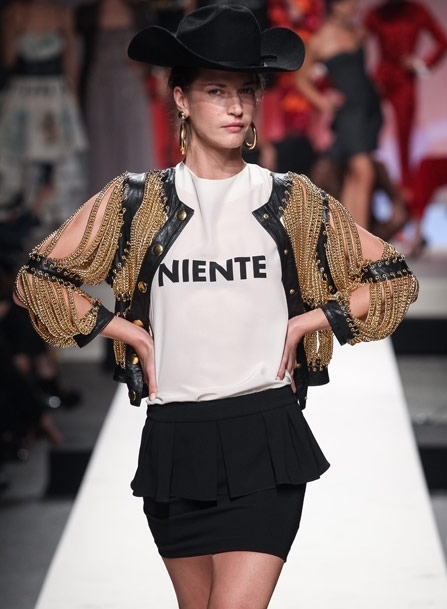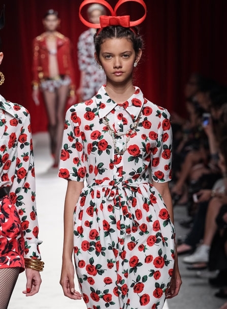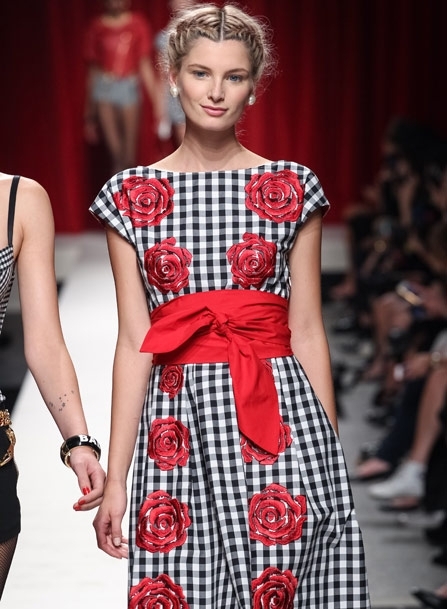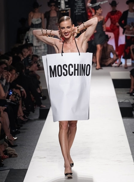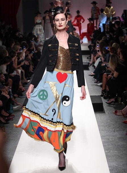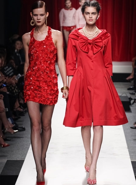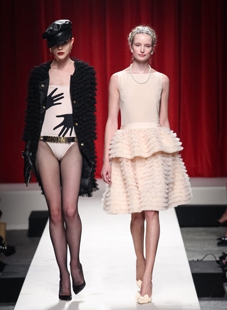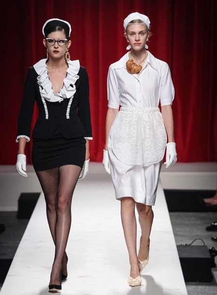 قدّمت Moschino في عرضها للصيف المقبل مجموعة من الأزياء التي يمكن أن ترتديها المرأة بطرق مختلفة، تمنحك إمّا طلّة ناعمة وبريئة، أو فاتنة وجذّابة. أزياء لا يخلو منها جو المرح مع تصاميم بالأسود والأبيض بقصّات هندسيّة، السحابات والسلاسل الذهبيّة بأحجامها الضخمة، السترة القصيرة، الكشاكش على أزياء من التول، والأحمر المنقوش بالورود والنقاط والرسوم المختلفة.
