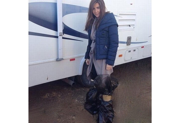 نانسي عجرم تغلّف رجليها بأكياس نايلون وتقول:'بدأ العد العكسي'