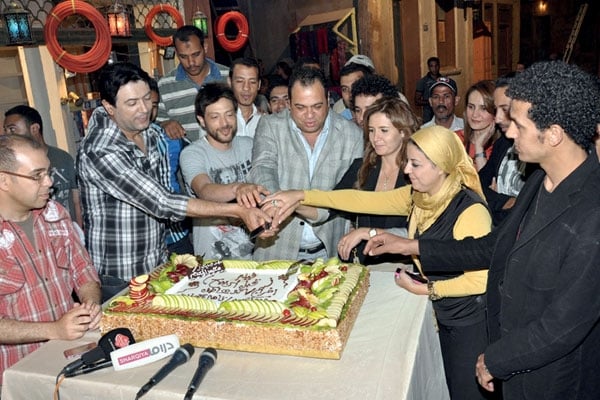 إسراء عبد الفتاح وهنا شيحا والمخرج أحمد عاطف/ إسراء بجوار أحمد وفيق