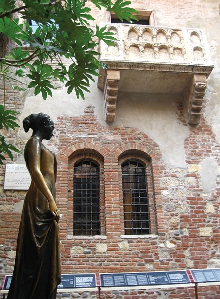 عندما تصلين إلى القصر الذي عاشت فيه جولييت الواقعية، سوف تلوح لك شرفتها الشاهدة على لقاءاتها بروميو الليلية، وتفاجئين أن هناك من سبقنك إليها.