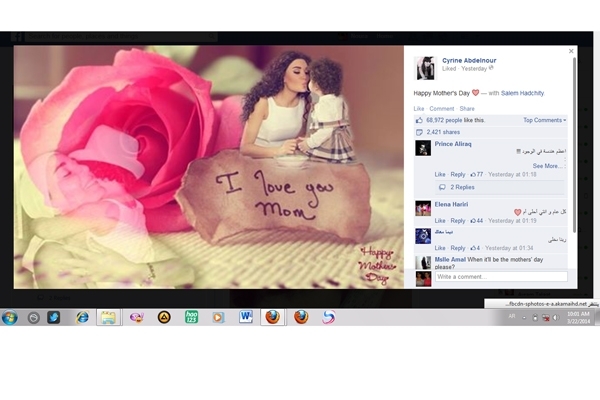 سيرين عبد النور نشرت صورة لها وهي تحتضن ابنتها تاليا؛ من خلال صفحتها الرسمية على موقع فيس بوك، وكتبت: "أشكرك يارب على نعمة الأمومة، شو ها الإحساس العظيم،الله يخليلي أمي ينعاد عليها وعليَّ وعلى أمهات العالم بالخير".