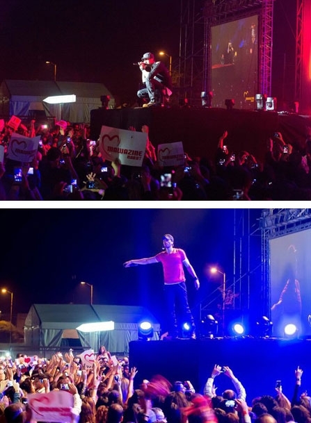 عندما صعد إيغليسياس إلى المنصّة الصغيرة حمل معه طفلة صغيرة وأدّى أغنية واحدة، وسط ازدحام شديد جعله ينتقل إلى المنصّة الكبرى، ليواصل حفله الذي استمرّ إلى حوالي الواحدة صباحا.