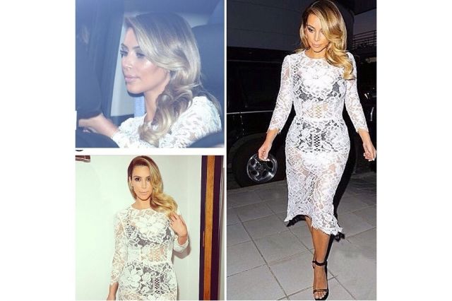 يبدو أن كيم سعيدة بوزنها بعد الإنجاب، أو أنهّا فساتين اختارها لها كانيي؛ فهذه الطلّة الشفافة الثالثة التي تختارها، بعد الأزياء الفضيّة التي ارتدتها لافتتاح محل Dash في ميامي وفستان Dolce & Gabbana الأبيض الذي ارتدته في برنامج Jay Leno.