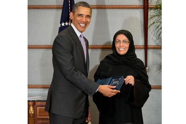 أوباما يُسلّم المنيف جائزة الشجاعة في الرياض