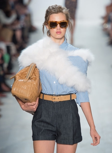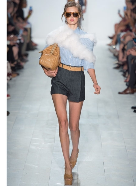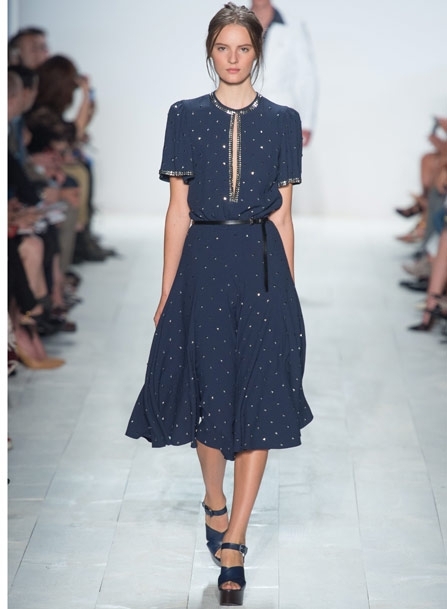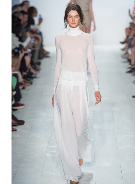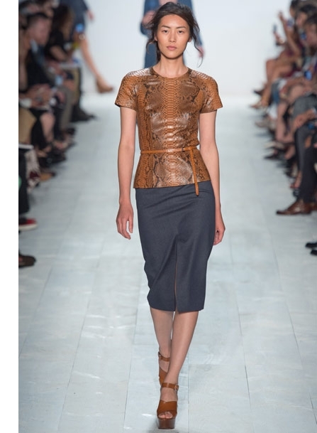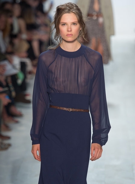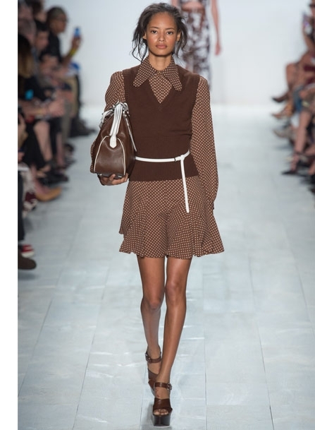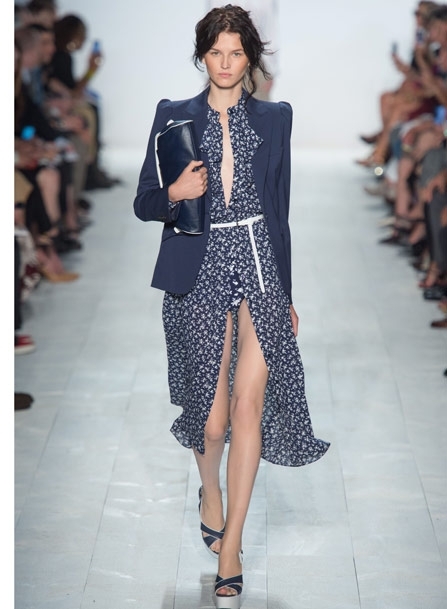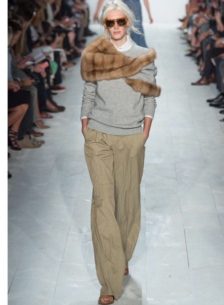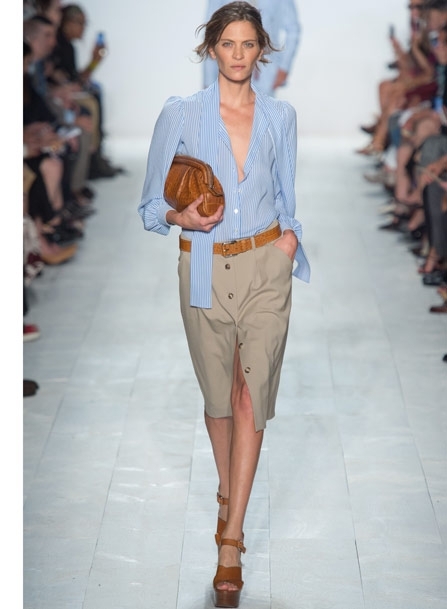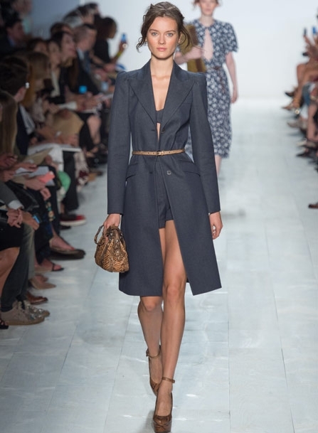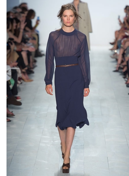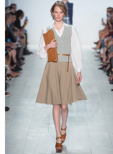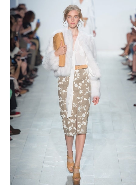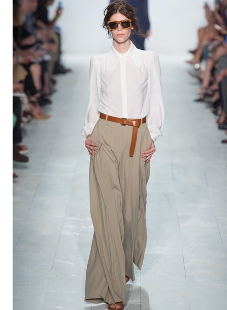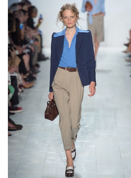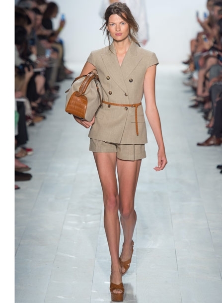 مجموعة المصمّم الأمريكيّ مايكل كورز لصيف 2014 رائعة، وارتداؤها سهل للغاية. المرأة فيها تحبّ الأزياء الكلاسيكيّة، أنيقة وعلى طبيعتها. أحياناً تختار أزياء بقصّات للرجال، ولكن ترتديها على طريقتها الخاصّة. هذه المرأة رومانسيّة تحبّ الجلد والدانتيل والكشمير، وترتدي السراويل الواسعة، وتنانير بثنيات، وخصرها دائماً محدّد بحزام رفيع. كما تفضّل ألوان البيج والرماديّ والكحليّ وتعيد البنيّ إلى الحياة.