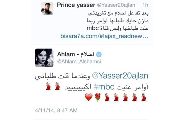 جاءت تغريدة أحلام بعد تصريح المتحدّث الرسمي لـ mbc مازن حايك أن أحلام ربما تقصد في عبارة طلباتي أوامر التي كتبتها في وقتٍ سابق على تويتر، طلباتها لطبّاخها أو سائق طائرتها الخاصة، وذلك في محاولة منه لدحض الأقاويل التي أرجعت انسحاب السوبر ستار راغب علامة من برنامج Arab Idol إلى الخلافات التي حصلت مع أحلام على مدى الموسمين السابقين.