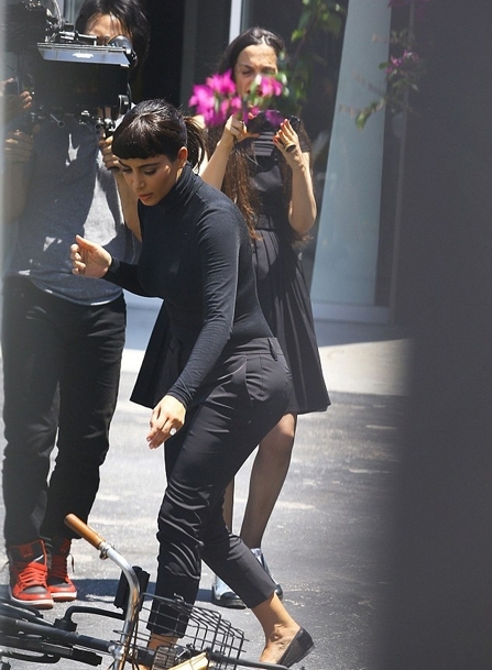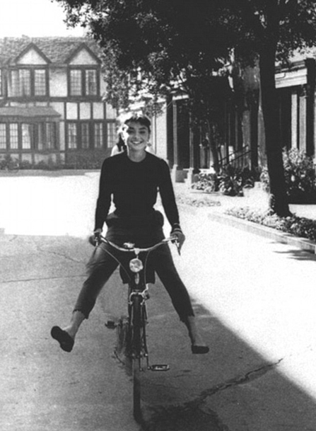 وكانت كيم تعيد تجسيد صورة الممثلة البريطانية الراحلة أودري هيبورن على الدراجة الهوائية التي التقطها المصوّر مارك شاو في العام 1954 في موقع تصوير فيلم Sabrina.