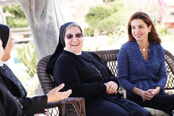 التقت الملكة رانيا العبدالله عددًا من راهبات الورديّة خلال جولتها في «بيت الزيارة» للراهبات في منطقة بدر الجديدة، واطّلعت على الخدمات والنشاطات المقدّمة فيه. وقد رحبت الرئيسة العامة لرهبنة الوردية الأم إينيس اليعقوب بالملكة، واستعرضت الدور الذي تقوم به الرهبنة في مختلف المجالات لإنماء الأردن.