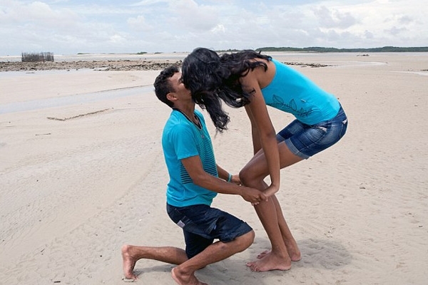 تنوي البرازيلية إليساني دا كروز سيلفا الزواج من حبيبها بعد أن انحنى على الرمال وطلب يدها بطريقة رومنسية.
