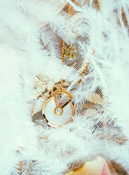 فالإضافة الأخيرة إلى مجموعة الدار، أي Amulette ، هي حليتي الجديدة الجالبة للحظ. إن تصميم القفل الذهبي الجميل مع القلادة المرصعة بعرق اللؤلؤ والماس يمنحني القوة لمطاردة أحلامي وتحقيق كل ما أردته. إنها تذكير دائم بأني أستطيع تحقيق أمنيتي، وسوف أحققها فعلاً.