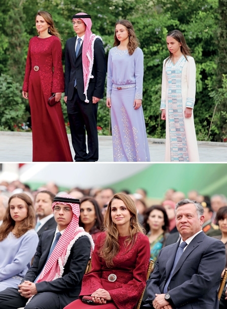 ثلاث ابتسامات بين الملك عبد الله الثاني والملكة رانيا وولي العهد الأمير الحسين بن عبد الله الثاني