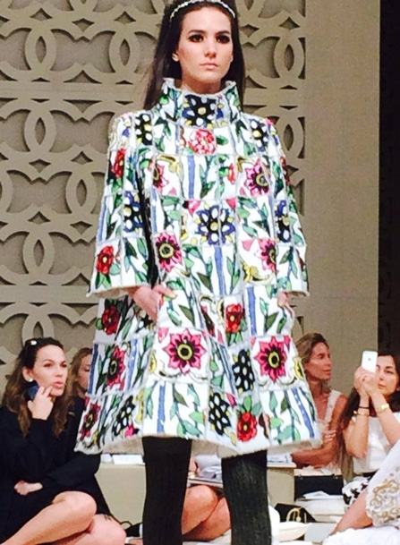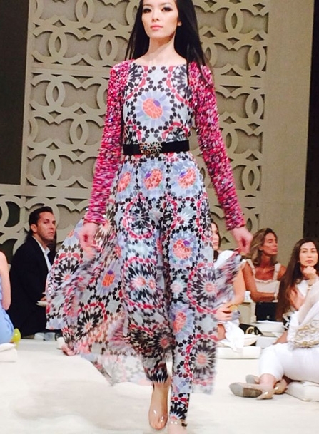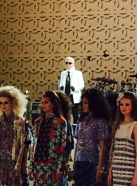 الروح الشرقية كانت مسيطرة بامتياز على مجموعة "شانيل كروز2015" بكل تفاصيلها، فقد شكلت المرأة العربية مصدر وحي أساسي للاغرفيلد الذي افتتح عرضه بأزياء مصنوعة من قماش "الشماغ" العربي باللونين الأحمر والأسود، كما برزت البنطلونات الشرقية الواسعة المطبعة بالأزهار والأثواب التي طبعت عليها رسوم برج خليفة وأبراج الإمارات بالإضافة إلى سترات التويد التي تم ارتداؤها فوق تنانير طويلة أو بنطلونات ضيقة. كما لفتتنا الأزياء المطبعة بنقوش الموزاييك الشرقي والأزهار الملونة بالاضافة إلى الحقائب المطبعة والأحذية المسطحة.