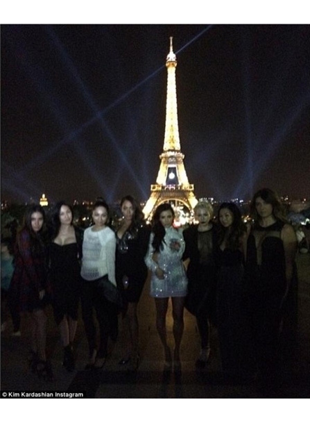 ودّعت كيم كارداشيان عزوبيّتها في مطعم Costes في شارع St. Honoré في باريس، بفستان مبهر من مجموعة Balmain لشتاء 2012 .