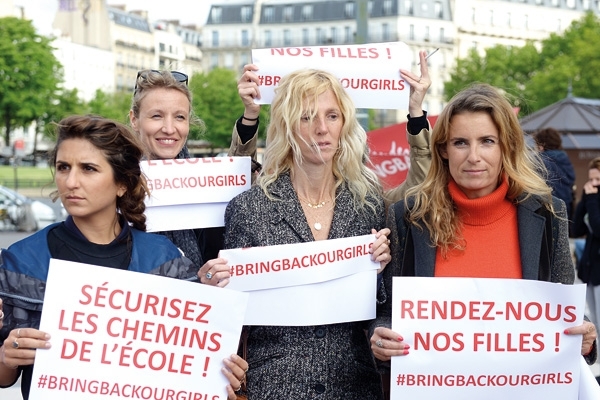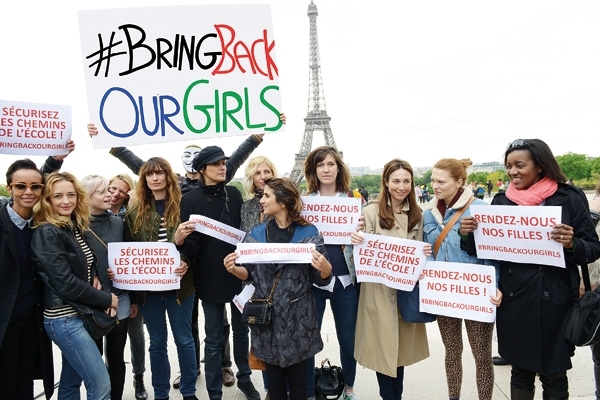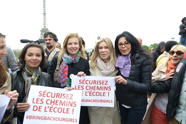 في إطار الدعم العالمي لقضية الطالبات النيجيريات المختطفات من قبل جماعة «بوكو حرام» المتطرفة، تم تنظيم تجمع في العاصمة الفرنسية باريس. فبعد مرور أكثر من شهر على اختطاف 270 طالبة، ما زالت هذه القضية تلقى الدعم على مواقع التواصل الاجتماعي من خلال هاشتاغ «BringBackOurGirls»، ومن خلال مظاهرات مؤيدة لإطلاقهن تشهدها مناطق مختلفة من العالم، ومنها التجمع الباريسي الذي شاركت فيه كارلا بروني زوجة الرئيس الفرنسي السابق نيكولا ساركوزي، وفاليري تريفيلير الرفيقة السابقة للرئيس الفرنسي الحالي فرنسوا هولاند، بالاضافة الى الممثلة الكسندرا لامي و المخرجة يامينا بنغيغي، والممثلة ليا سايدو ومجموعة كبيرة من النجمات الفرنسيات. وقد حملت المتظاهرات يافطات كتبت عليها شعارات تطالب بتحرير الطالبات النيجيريات بأسرع وقت ممكن.
