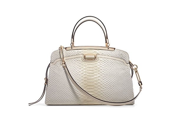 حقيبة «بوند» المصنوعة من الجلد الأنيق متوافرة بحجمين عمليين، وحقيبة «سايدي» فتثري موضة الأبيض والأسود السائدة. ومتوافرة بتصميمين: الأول ذو طباعة مميزة والثاني بلونين من جلد البايثون.