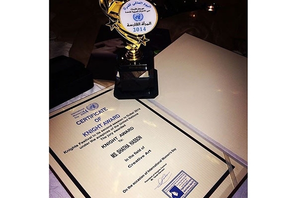 وكانت الفنانة شذى حسون قد حظيت أخيرراً بتكريم خاص كفارسة للأغنية العربية في مهرجان المرأة الفارسة بدبي.