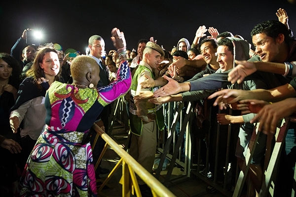 في جو حميمي مع جمهور منصة أبي رقراق، استطاعت النجمة الأفريقية أنجليك كيدجو متحدية شروط البروتوكول أن تنزل لتحية جمهورها ومطالبتهم مشاركتها الغناء والرقص.