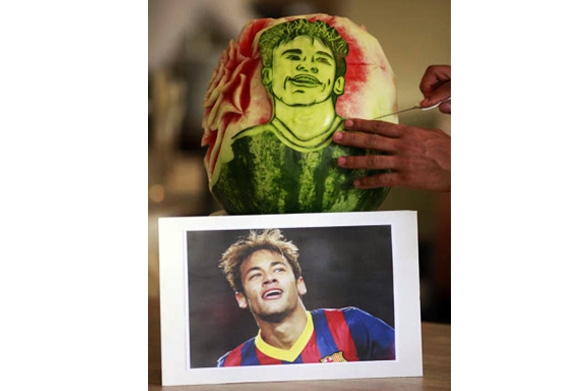 انتشرت صور للاعب منتخب البرازيل نايمار مرسوم على بطيخة. وعلّق مرتادو مواقع التواصل الاجتماعي على هذه الصور أن نايمار بات ينافس النجمة اللبنانية نانسي عجرم على لقب ملك البطيخ.