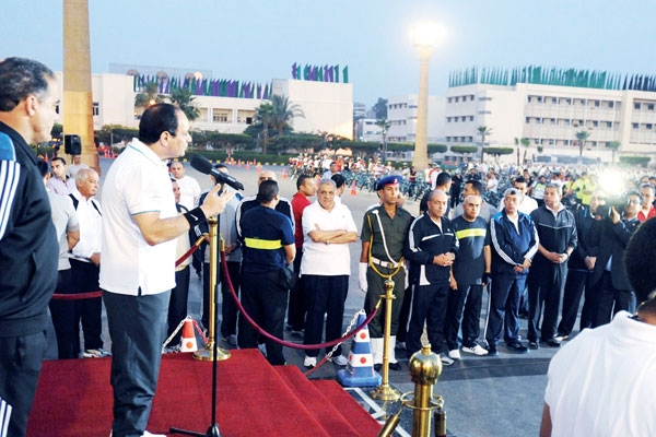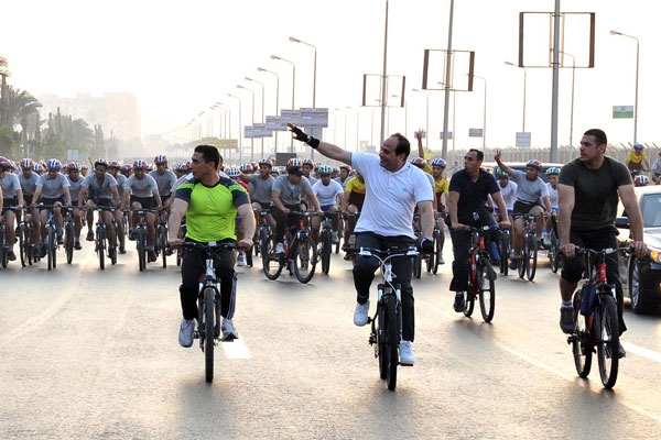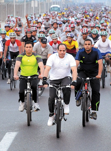 شارك الرئيس المصري المشير عبد الفتاح السيسي في يوم رياضي تضمن ماراثوناً للدراجات، أقيم من الكلية الحربية وطريق الإسماعيلية لمسافة 20 كيلو متراً، ومعه المهندس إبراهيم محلب رئيس مجلس الوزراء، والفريق صبحي صدقي وزير الدفاع، واللواء محمد إبراهيم وزير الداخلية، والمهندس خالد عبد العزيز وزير الشباب والرياضة وغادة والي وزيرة التضامن الاجتماعي.