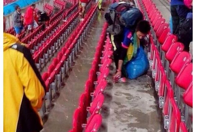 رغم خسارة فريقهم أمام ساحل العاج في مونديال 2014، حرص مشجعون يابانيون على تنظيف المدرجات بعد المباراة في تصرف غير اعتيادي من جماهير كرة القدم.