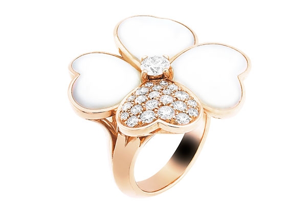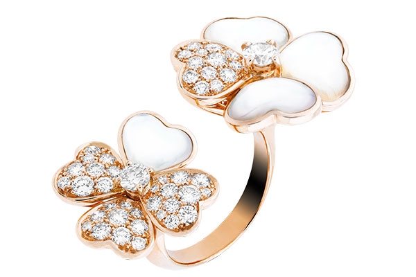 تتفتح براعم الأزهار المزدانة بعرق اللؤلؤ الأبيض والعقيق اليماني. بمزيج رقيق من النعومة واللماعية، تكرّم هذه الابتكارات من المجوهرات موضوعي الطبيعة والحظ السعيد، مصدرا الإلهام الأقرب إلى قلب Van Cleef & Arpels.
