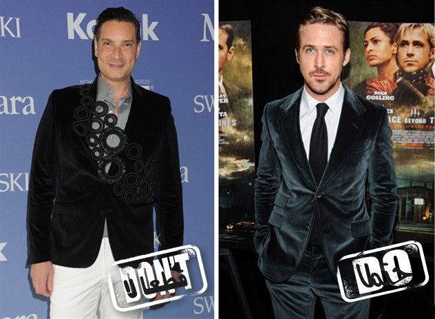 Do- Ryan Gossling: اختر بذلة من المخمل باللون الذي تفضّله، وارتدِها بأناقة.