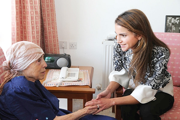 الملكة رانيا تتفقّد أحوال المسنين في 'دارات سمير شما' برفقة الأميرة إيمان