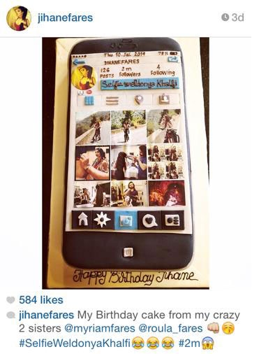 جسّدت النجمة اللبنانية ميريام فارس حساب شقيقتها الأصغر جيهان في "إنستغرام" Instagram على قالب من الحلوى، لتفاجئها به يوم عيدها الذي صادف بتاريخ 10 تموز الجاري، مسدية إليها نصيحة أخوية مطعّمة بنكهة "إنستغراميّة"، كتبتها على القالب وقالت فيها: