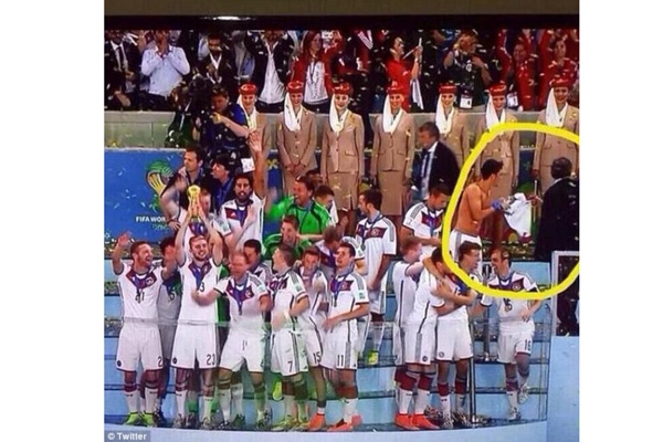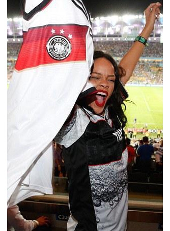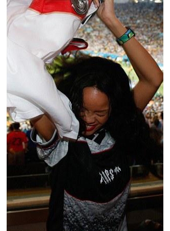 تناقلت المواقع الالكترونية صورة مأخوذة من تويتر للاعب كرة القدم في منتخب ألمانيا مسعود أوزيل وهو يخلع قميصه ويهديه للنجمة ريانا خلال تسلّم كأس العالم الذي فازت به ألمانيا على الأرجنتين 1-0.