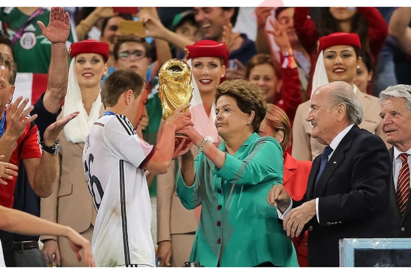 وقد حضرت أنجيلا مركيل المباراة التي انتصر خلالها «فريقها» الألماني وأصبح بطل العالم للأربع سنوات المقبلة بينما بقيت الرئيسة الأرجنتينية كريستينا كيرشنر في بلادها واستقبلت الفريق الوطني ولاعبه الاشهر ليونل ميسي.