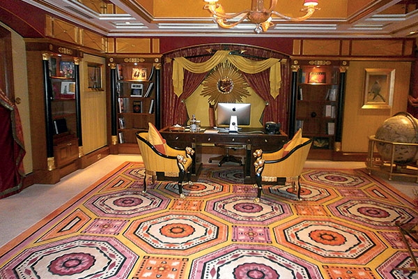 أما الألوان المختارة في ديكور الجناح فكلها ألوان قوية تتماشى مع الديكور العربي وتم اختيارها خصيصاً لتتماشى مع الأسلوب العربي المعتمد في كل زوايا الفندق.