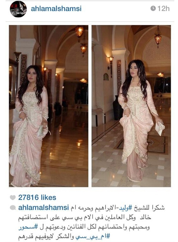 ظهرت أحلام في سحور mbc بإطلالة مبهرة، فاختارت القفطان المغربي ونجحت في اختيار اللون المناسب لبشرتها، أما شعرها فكان منساباً بأناقة حتى ليظن الناظر أنها إحدى أميرات سرايا عابدين.