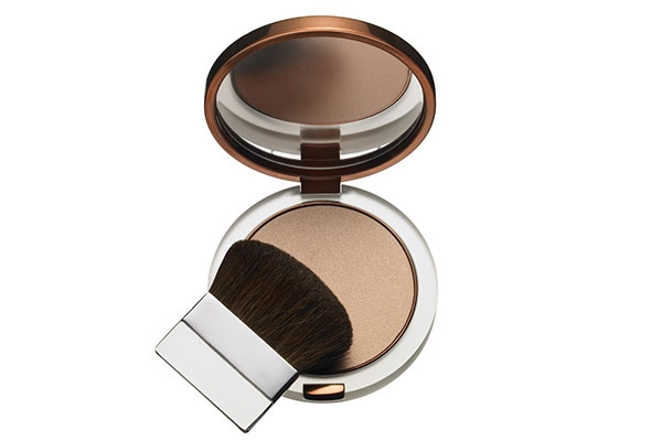 حضري البشرة لاستقبال كريم الأساس باستعمال ممهّد الأساس المعزز للألق Chanel Base Hydra Lumiere Age-Defying Moisture Glow Base SPF 30 PA+++، ووحّدي لون السحنة بواسطة كريم أساس سائل لا يُثقل الملامح Lancôme Miracle Air de Teint Perfecting Fluid Matte Glow Creator SPF 15 in Muscade no.11. بعدها، ثبتي الأساس بلمسات رشيقة من البودرة المدمجة Clinique True Bronze Pressed Powder.