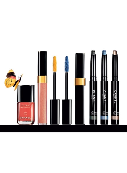 تشمل لوحة ألوان المستحضرات لمجموعة الصيف ألواناً متلألئة كالأصفر الذهبي، والأزرق الحيوي، والأخضر المائي، والمرجاني المركّز، التي ترفرف في الضوء كالفراشات. أما الشفاه فتحافظ على طبيعتها من خلال ألوان الخوخ أو التوت التي تتألّق على وجه متورد صيفي. تضمّ مجموعة L'ةté Papillon De Chanel أقلام تظليل الجفون اللؤلؤية بستة ألوان، هي: الذهبي، الوردي، الأخضر، الأزرق، البرونزي، والأسود. قلم تحديد العينين المقاوم للماء باللون الأزرق True Blue، الماسكارا المقاومة للماء بألوان جريئة، هي: الأصفر، الأخضر، الأزرق، النيلي، والأسود. ملمّع الشفاه في ثلاثة ألوان، هي: الوردي الباهت، البرتقالي الشفاف، والفوشيا. أما أحمر الشفاه اللمّاع Rouge Coco Shine فيأتي في لونين، هما: الوردي الباهت والفوشيا. كذلك تتزيّن الأظافر بألوان منعشة، هي: المرجاني Lilis، الأخضر Azure، والأزرق البحري Bel-Argus.