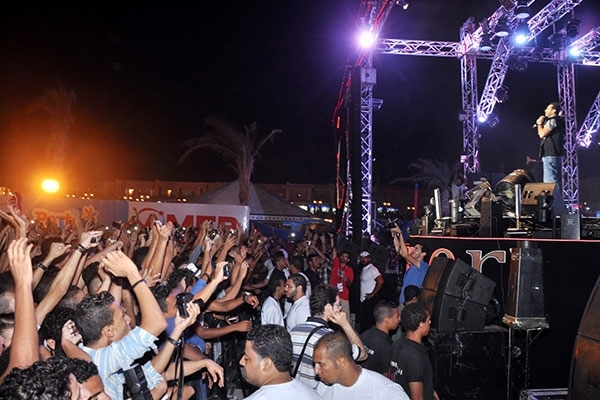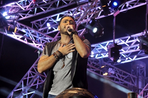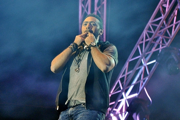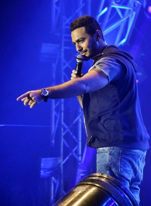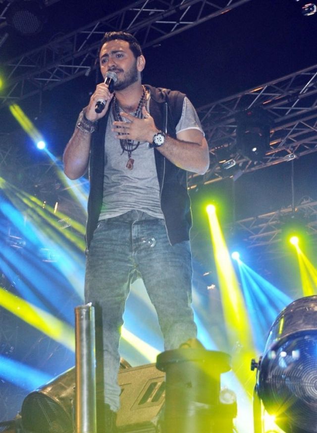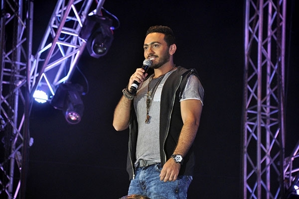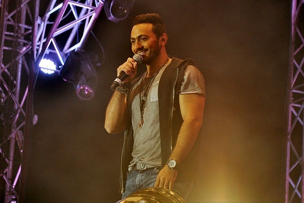 وبعدها واصل تامر حفله الغنائي بأغنياته الشهيرة "أنا مصري" و"يا أنا يا مافيش" و"ما اتحرمش منك".