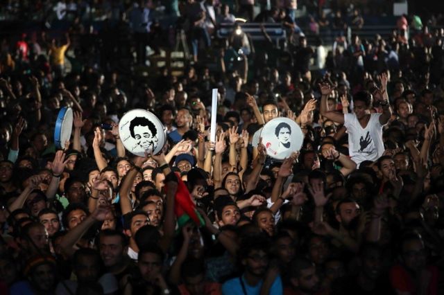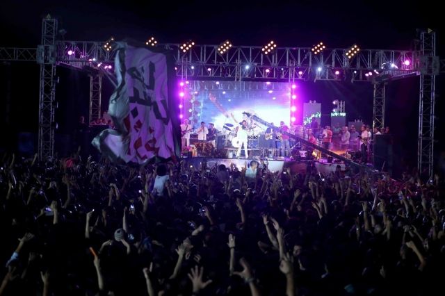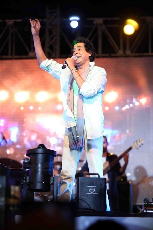الطريف أن منير بدأ الغناء وهو حافي القدمين، وبمجرد صعوده على المسرح هتف له الجمهور "الكبير كبير"، فرد عليهم: "وحشتونى وإحنا كلنا وحشتنا مصر، وحاولت فى سنة ونصف أكون معكم لكن عودة مصر الأهم، أنتم بنات وولاد حتة الرمانة بتاعتنا، الرمانة اللي قشرتها تقيلة وصعبة بس جواها حلاوة"، ثم غنى "يا رمان" وسط تفاعل كبير من الجمهور.