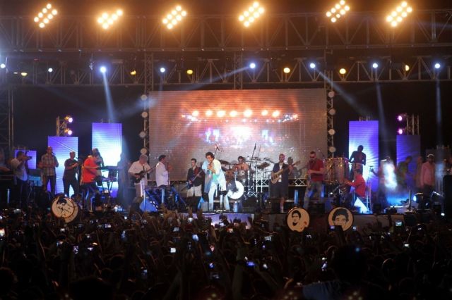 ولم يتمالك منير دموعه وهو يغني وسط الآلاف من جمهوره تأثراً بعودته إليهم من جديد.
