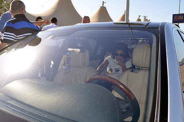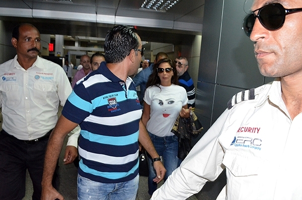 وخطفت الفنانة اللبنانية الأنظار فور وصولها، وكانت ترتدي تي شيرين أبيض عليه صورتها، وأحاط بها عدد من الحراس الشخصيين لحمايتها.