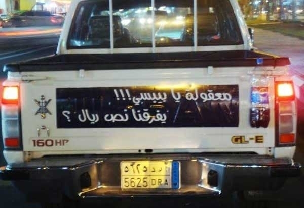 إليكم مجموعة من الصور لكتابات يحرص السائقون في العالم العربي على كتابتها على سياراتهم.
