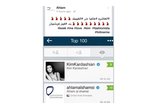 وفور تداركها الأمر، التقطت أحلام صورة عبارة عن Screen Shot تظهر النتيجة، أرفقتها بالتعليق التالي: "العاشرة عالمياً على الكييك بعد كيم كردشيان"، مسجّلة نحو 49.9 مليون مشاهدة، فيما سجّلت كيم نحو 65.5 مليوناً.