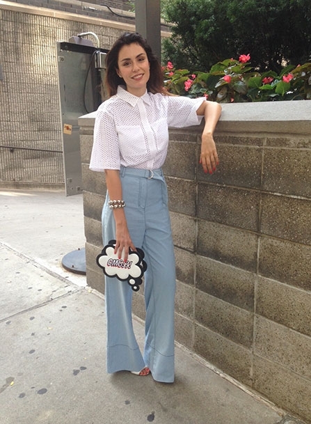 خلال أسبوع الموضة في نيويورك، اختارت ليزي اليوم سروالا من الجينز من فيليب بلاين وقميصاً من ساندرو، وحملت حقيبة مرحة من صوفيا وبستر. ما رأيكم بطلتها؟