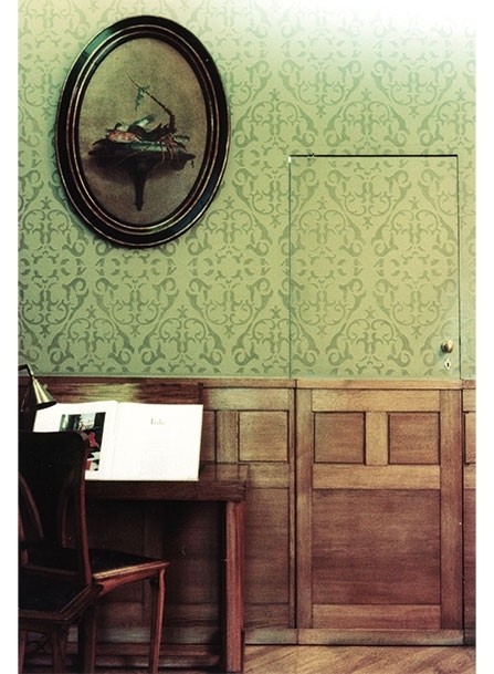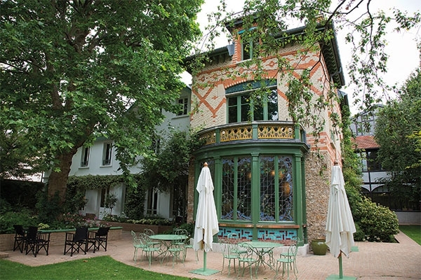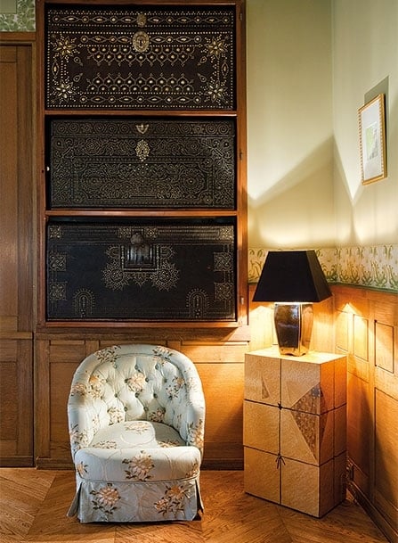 عام 1878 انتقل لوي فويتون وعائلته للعيش بين منزلين بناهما في الحديقة المحيطة بالمشغل. وبعد وفاته عاش ابنه جورج مع عائلته في المنزل الذي أتيحت لنا زيارته. ثم اهتمت الأجيال المتعاقبة من ورثة الاسم العريق بالمنزل الذي جلسنا في غرفة استقباله، هذه الغرفة التي لم يتغيّر ديكورها مع باقي أركان المنزل منذ تركها آخر جيل من سكّانه، المدفأة المؤطرة بالسيراميكك الأزرق والجدران المغطاة بألوان دافئة من القشدي إلى الوردي والأخضر، النافذة الزجاجية العريضة التي يظهر من خلفها بهاء الحديقة، والتي تكمل روعتها قطع من الزجاج الملوّن والمزخرف برسوم الزهور.