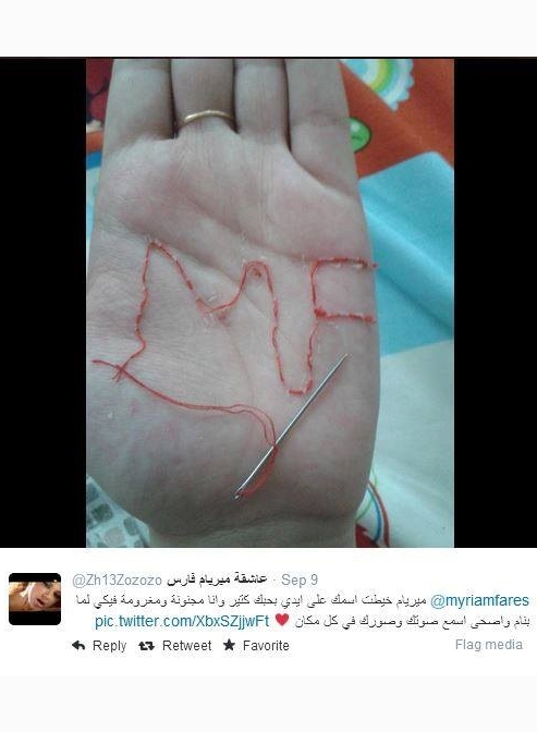 معجبة مهووسة تخيط اسم ميريام فارس على يدها